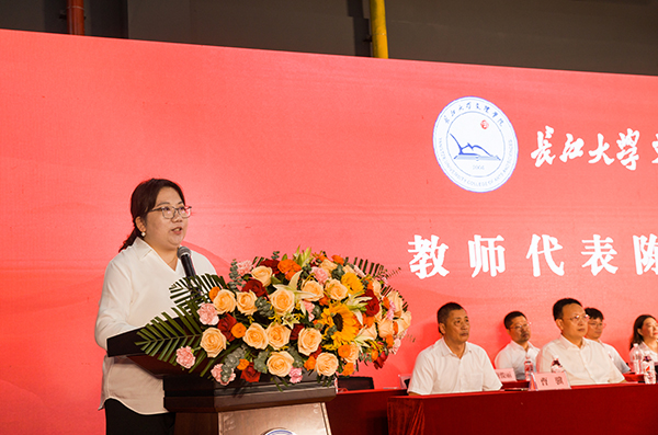 教师代表陈莎向毕业生送上祝福。希望大家保持学习的热情,勇于面对挑战,珍惜身边的人和事,坚守自己的原则和道德底线,成为一个有责任心、有担当的人。正直、善良、勇敢,为社会作出贡献。祝同学们前程似锦,未来可期,常回母校看看。