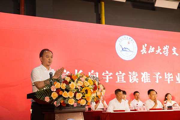 本网讯(记者 刘磊)杏坛花正落,槐市叶新长。6月,夏风轻拂的荆州古城之南,依江而建的bevictor伟德官网校区迎来了又一个毕业季。在这庄重、喜悦的时刻,公司于14日上午在体育馆隆重举行了2024届毕业典礼暨学位授予仪式。全体校领导出席毕业典礼,各教学单位负责人、相关职能部门负责人、全体毕业班辅导员和2024届毕业生代表及员工代表参加典礼。