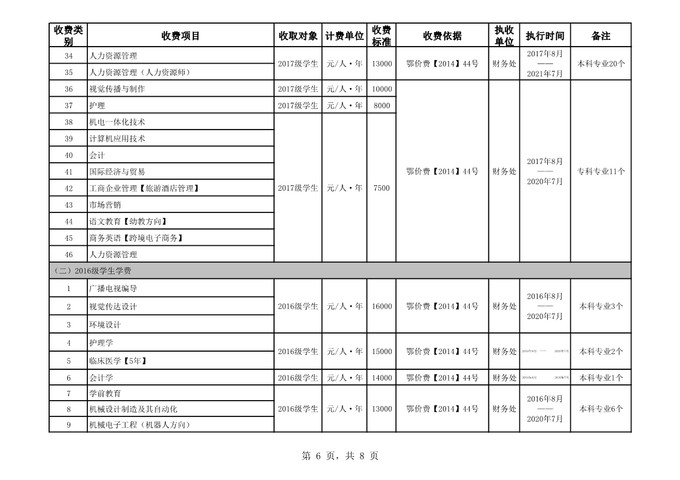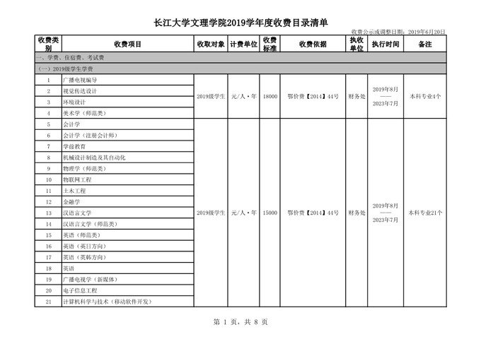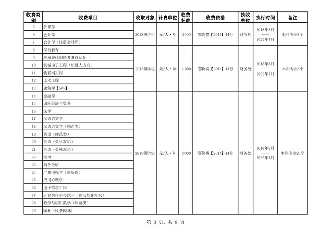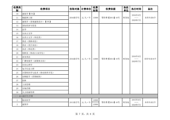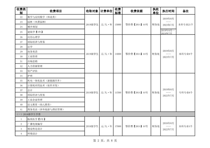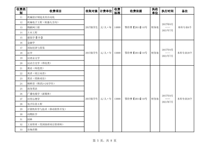根据省教育厅、省物价局《关于我省民办普通高等公司学费标准备案及有关问题的通知》(鄂价费(2016)63号文)的文件精神,经向湖北省教育厅、湖北省物价局备案,公司2019年收费目录清单公布如下: