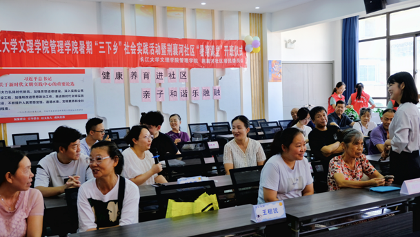 在全场期待中,管理公司党总支书记胡沿林宣布活动正式启动。社区副书记刘璐为实践队授旗,标志着校社合作新征程的开启。