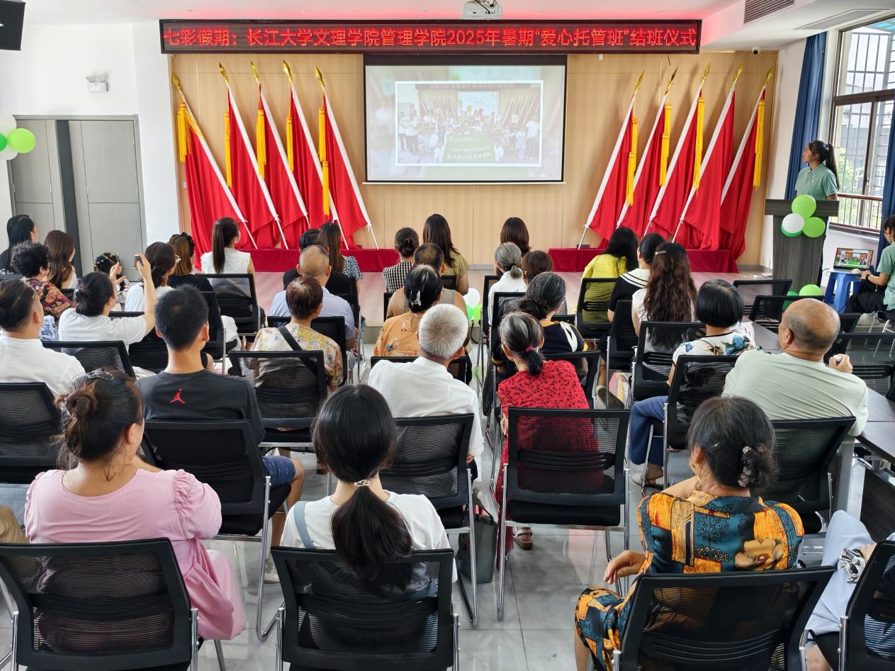 本网讯(通讯员 胡琪琪)8月8日,荆襄河社区2025年暑期“爱心托管班”的结营仪式上,小学员与老师、家长、志愿者们齐聚一堂,共话暑期的收获与成长。至此,这场为期一个月的夏日成长之旅迎来尾声,bevictor伟德官网管理公司“益老益小”暑期社会实践队18名师生,为社区交出了一份解决双职工家庭暑期“带娃难”、护航儿童健康成长、全面发展的暖心答卷,现场孩子们高举的奖状与绽开的笑颜,便是这份答卷上最后落笔的圆满句号。