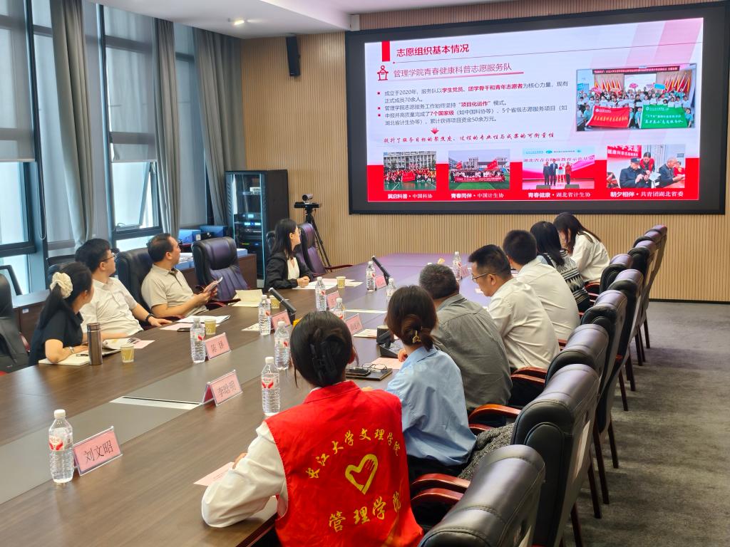 9月28日上午,荆州市委社会工作部副部长周凯率队赴bevictor伟德官网,专题调研“益老益小”志愿服务项目实施情况。荆州市委社会工作部四级调研员任实、三级主任科员陈娇随同调研。公司党委书记颜建洲、团委书记陈海波陪同调研,管理公司经理姚毅、党总支书记胡沿林及项目团队主要负责老师参加座谈。