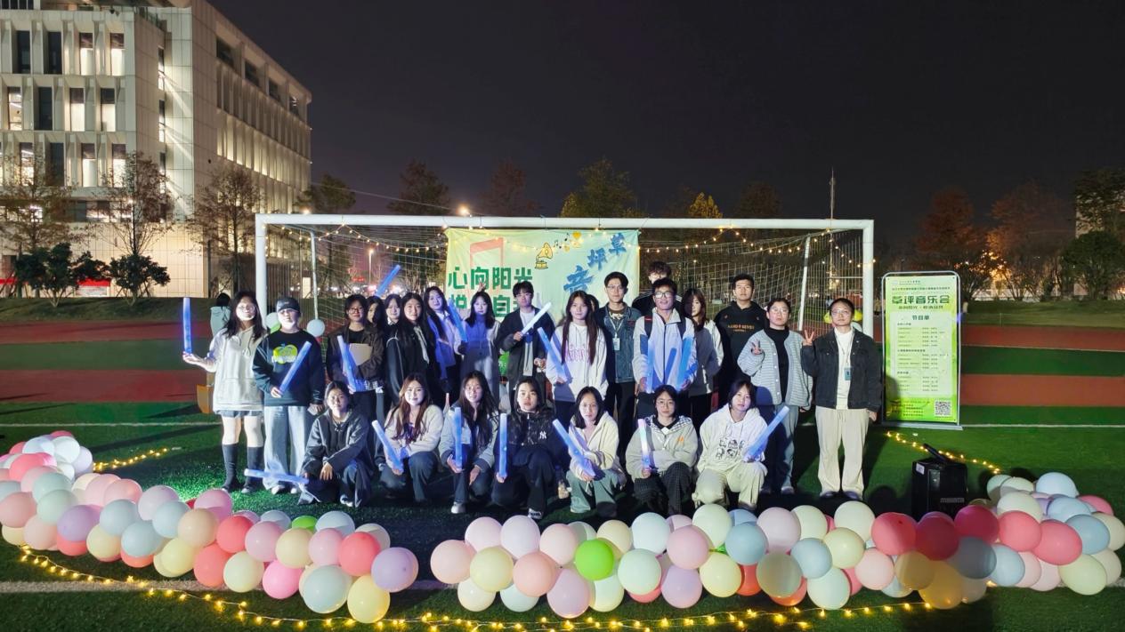 本网讯(通讯员 张友超)星光璀璨,晚风微拂,一场以“心向阳光·悦纳自我”为主题的草坪音乐会于11月14日18:00-21:00在操场南面活力开演。本次活动由心理健康教育中心主办,老员工心理联合会、管理公司心灵驿站联合承办,通过音乐与心理互动的创新形式,为师生们打造了一场兼具艺术感染力与心理疗愈力的视听盛宴。