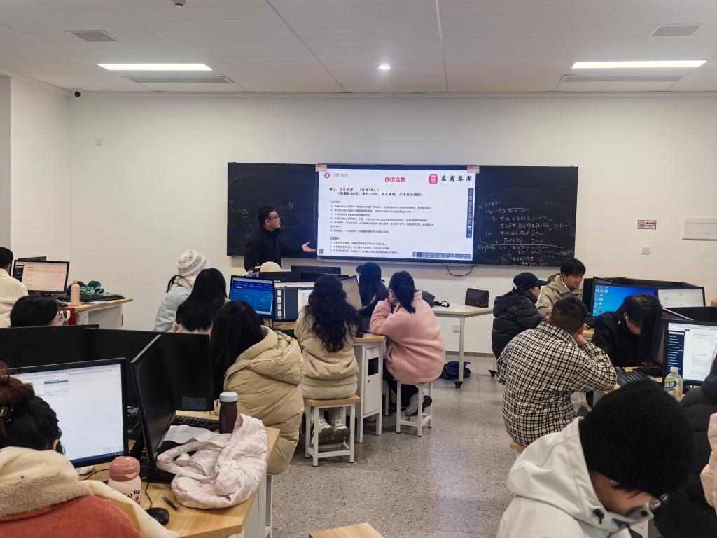 宣讲会上,万商集团人事部经理王勇不仅介绍了集团的业务发展与人才需求,还结合自身经历,为同学们的职业生涯规划提供了中肯建议。现场带来了涵盖财税、法务、运营等多个方向的实习与就业机会,为毕业生提供了多样化的选择。
