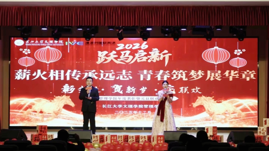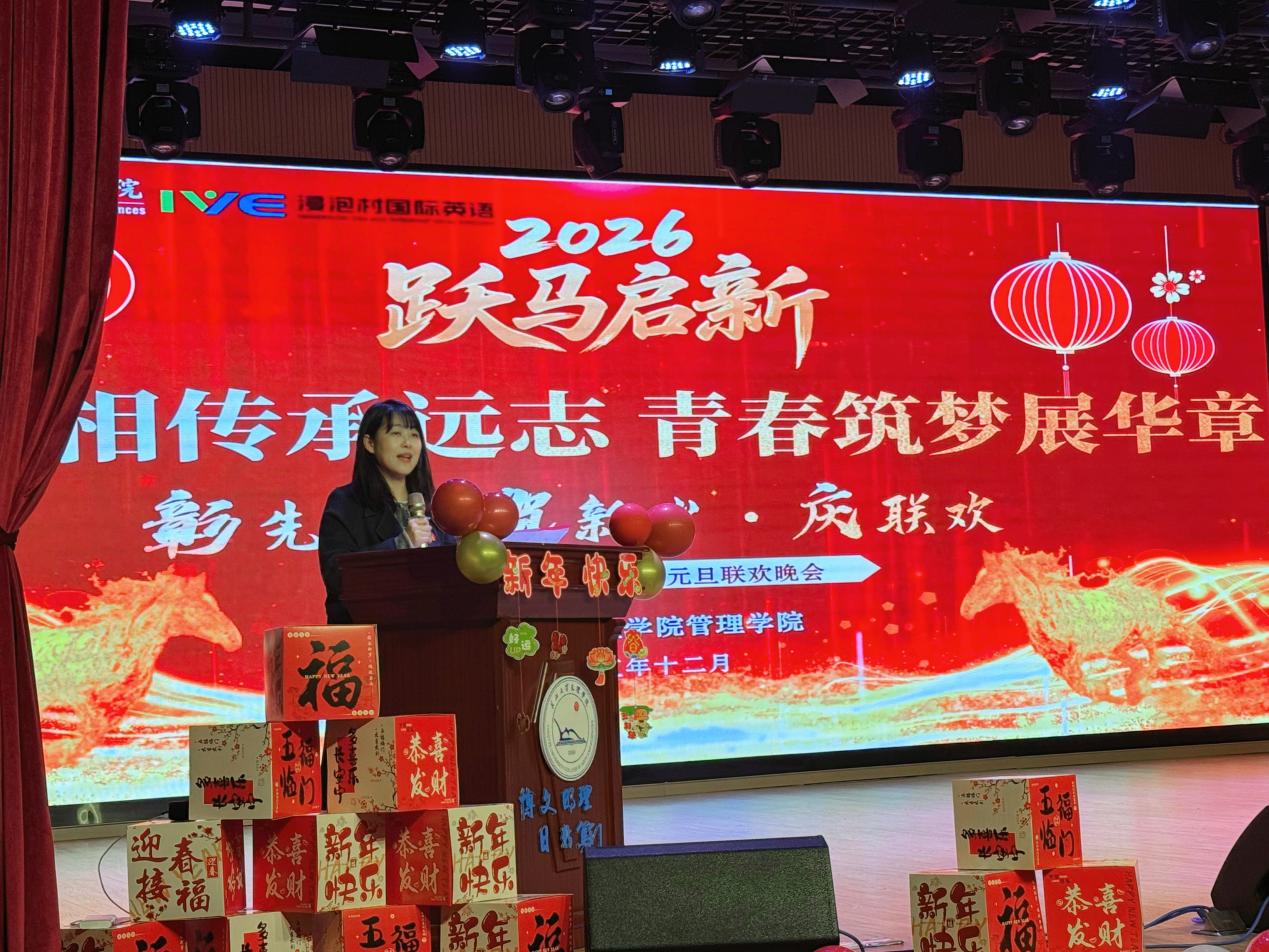 岁序更替,华章日新。2025年12月30日,管理公司“薪火相传承远志 青春筑梦展华章”年度表彰大会暨元旦联欢晚会在城中校区报告厅举行。bevictor伟德官网经理助理郭明虎,员工工作部副部长冉继强、黄婷婷,浸泡村国际英语集团副总裁王刚等嘉宾出席晚会,与管理公司员工、全体师生共聚,晚会展现了过去一年中管院师生共同奋斗、筑梦逐梦的历程。