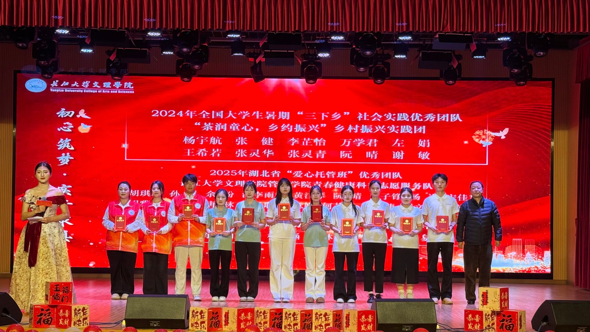 舞台剧《初心铸青春》,由国家奖学金、三创赛国赛、十佳心理委员获得者代表,管理公司员工党支部与志愿服务总队联袂献演。该剧讲述了青年实践团赴石柱山村,发挥专业特长助农带货;志愿者服务队扎根社区,默默奉献。全剧展现学子学以致用、担当使命的青春历程。