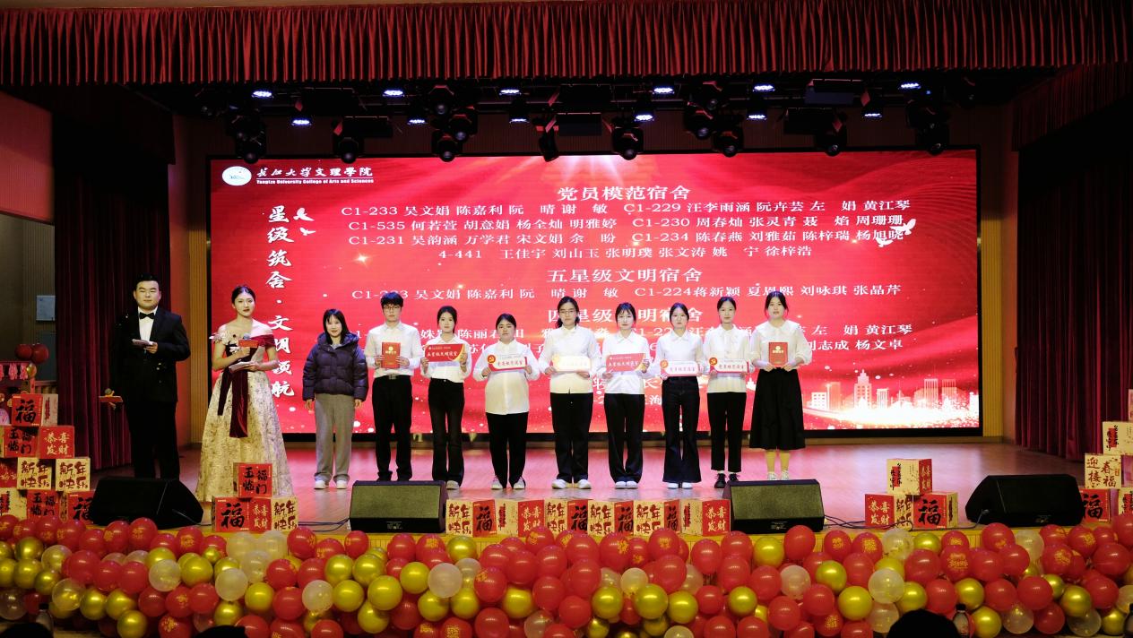 “星级筑舍·文明领航”表彰在公司“寝室文化节”建设中表现突出的优秀宿舍,管理公司副经理杨璐为获奖代表颁奖。
