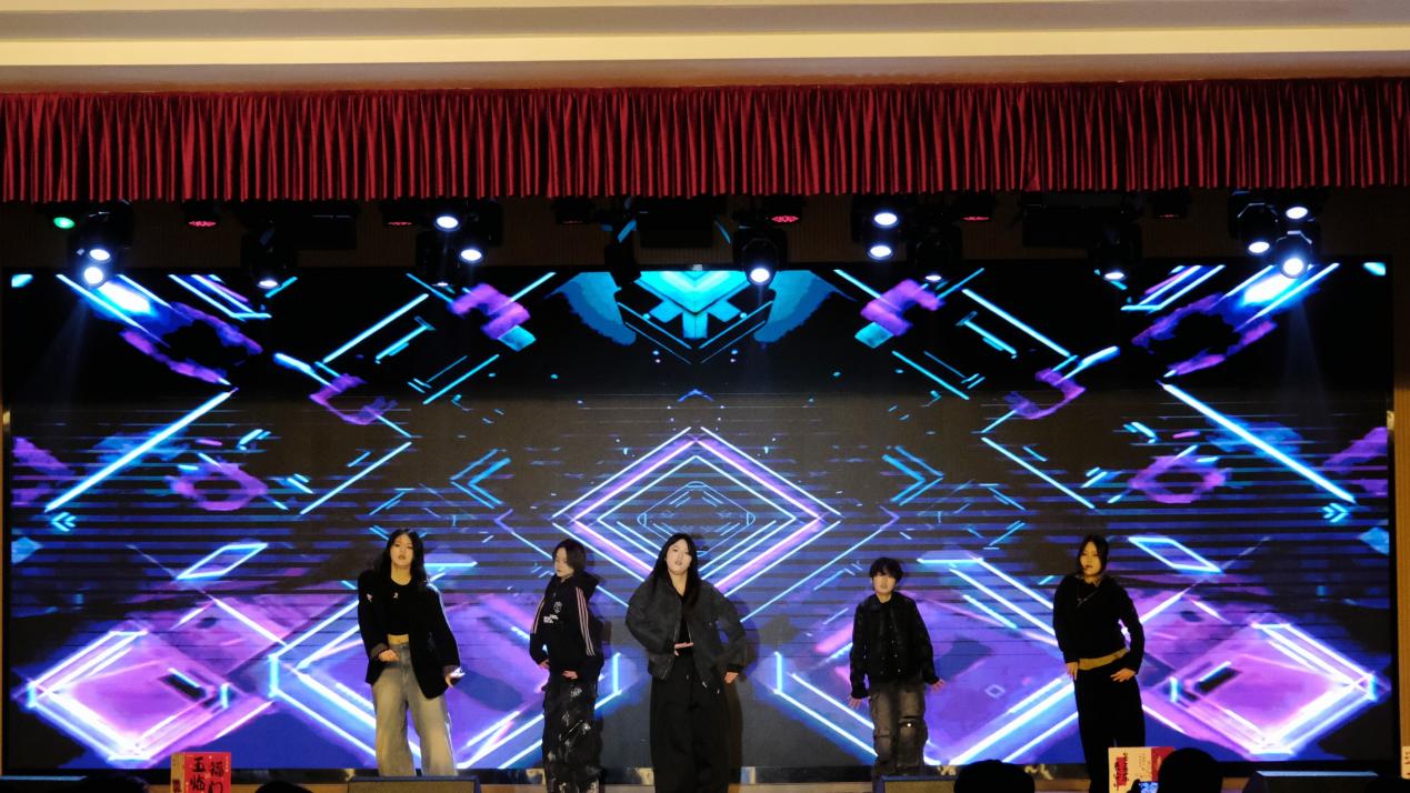 管理公司师生利用AIGC技术共创MV《薪火》开篇燃情,用青春旋律点亮逐梦征途;老员工艺术团带来节奏风暴《Boomboombass》,活力满格,瞬间点燃全场热情,拉开了晚会序幕。