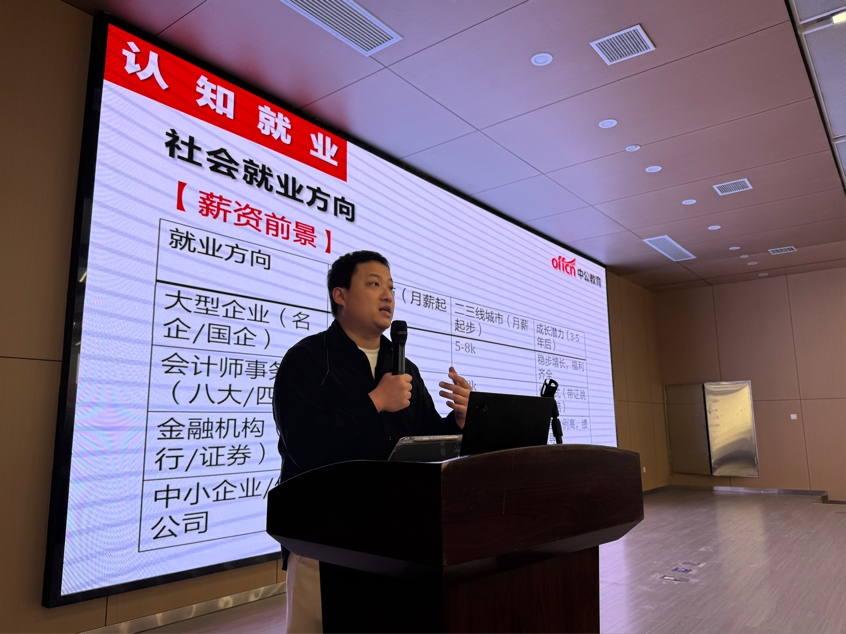 两场升学就业专题讲座的相继开展,是公司深化就业指导服务、落实 “精准滴灌” 育人理念的重要举措,更离不开中公教育的大力支持与专业赋能。讲座分别针对低年级全体本科生和大三会计专业学子的不同需求精准发力,不仅为同学们搭建了获取升学就业专业信息的优质平台,更系统解答了学子们在职业选择、升学备考中的困惑与疑问,有效缓解了同学们面对未来发展的迷茫与焦虑,帮助大家进一步明晰了升学就业发展方向,掌握了实用的规划方法与备考技巧,以更饱满的状态迎接未来挑战。