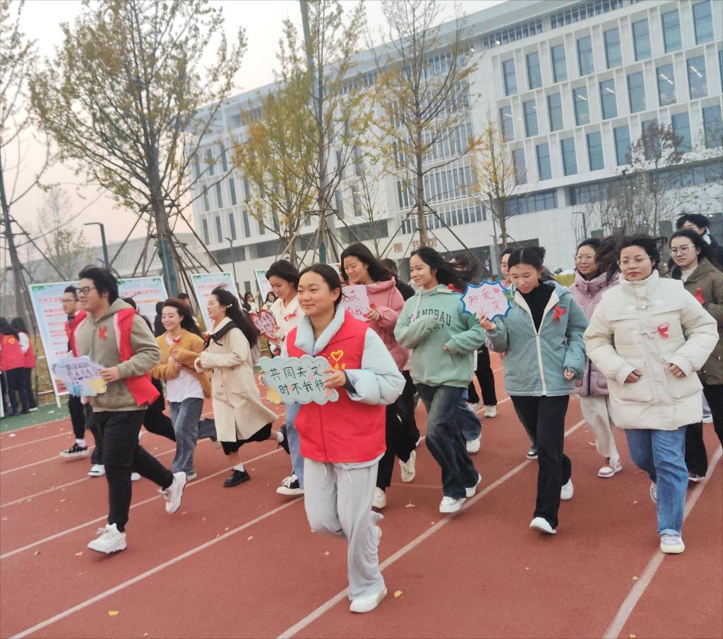 “拥抱你心中的孤单,投射一道光线,迎着阳光就能看见......”伴随着一首首防艾宣传歌曲,300多名员工佩戴上象征“对HIV和艾滋病的关心”的红丝带,手持宣传标语,迎着冬日的暖阳,开始了“行动起来 向‘零艾滋’迅跑”公益健康活动。“这是一次绿色环保、富有乐趣的跑步活动,不仅锻炼了身体,而且还参与了艾滋病防治推广,非常有意义”会计5231班张雨晴参与后表示。