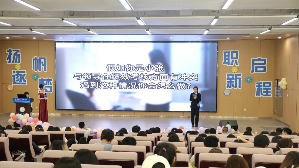 经过院系推荐、初赛筛选、模拟面试等环节的严格选拔,10名选手突破重围晋级决赛。"奋楫扬帆"个人展示环节中,选手们通过职业规划演讲、专业技能情景剧等创新形式,生动诠释Z世代职场新人的专业积淀。