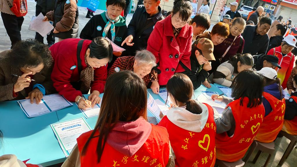 游园会现场设置了科普展示区、互动体验区、咨询义诊区三个区域,内容丰富且贴近老年群体需求。科普展示区通过图文展板、案例讲解等形式,生动普及认知障碍的早期信号、预防方法及科学照护知识;互动体验区人气爆棚,“记忆投篮”“祝福留声”等趣味游戏,让老年朋友们在轻松玩乐中锻炼脑力,同时直观感受认知功能训练的重要性;咨询义诊区里,专业人员老年群体测血压,检查眼睛,直观地了解老年人身心健康。