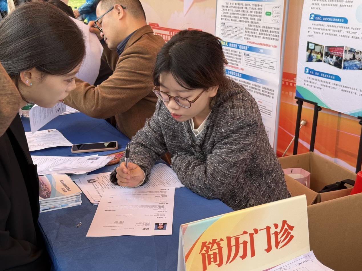 为切实提升毕业生的求职竞争力,管理公司在会场核心区域设立了“综合服务区”。服务处不仅提供免费打印简历服务,解决毕业生的燃眉之急;还邀请了职引未来辅导员工作室成员人力资源管理专业副教授张勤、管理公司党总支副书记杨琪、辅导员李晗明组成“简历门诊”团队,为毕业生提供一对一的简历诊断和修改建议。老师们凭借丰富的经验和专业知识,从简历内容、排版设计到语言表达等方面,为员工提出详细的改进意见,帮助他们打造更具竞争力的求职简历 。