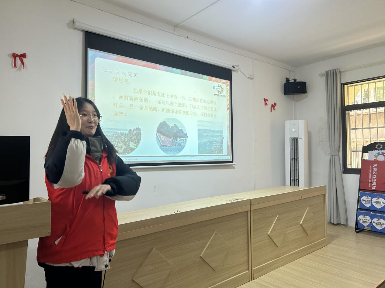 课堂开始,通过情景讲述和互动提问,讲述了“狼牙山五壮士”为掩护群众和主力部队转移,毅然将敌人引向绝路,舍身跳崖的壮烈事迹。孩子们在引导下积极思考,深刻感受到了英雄们宁死不屈的民族气节。