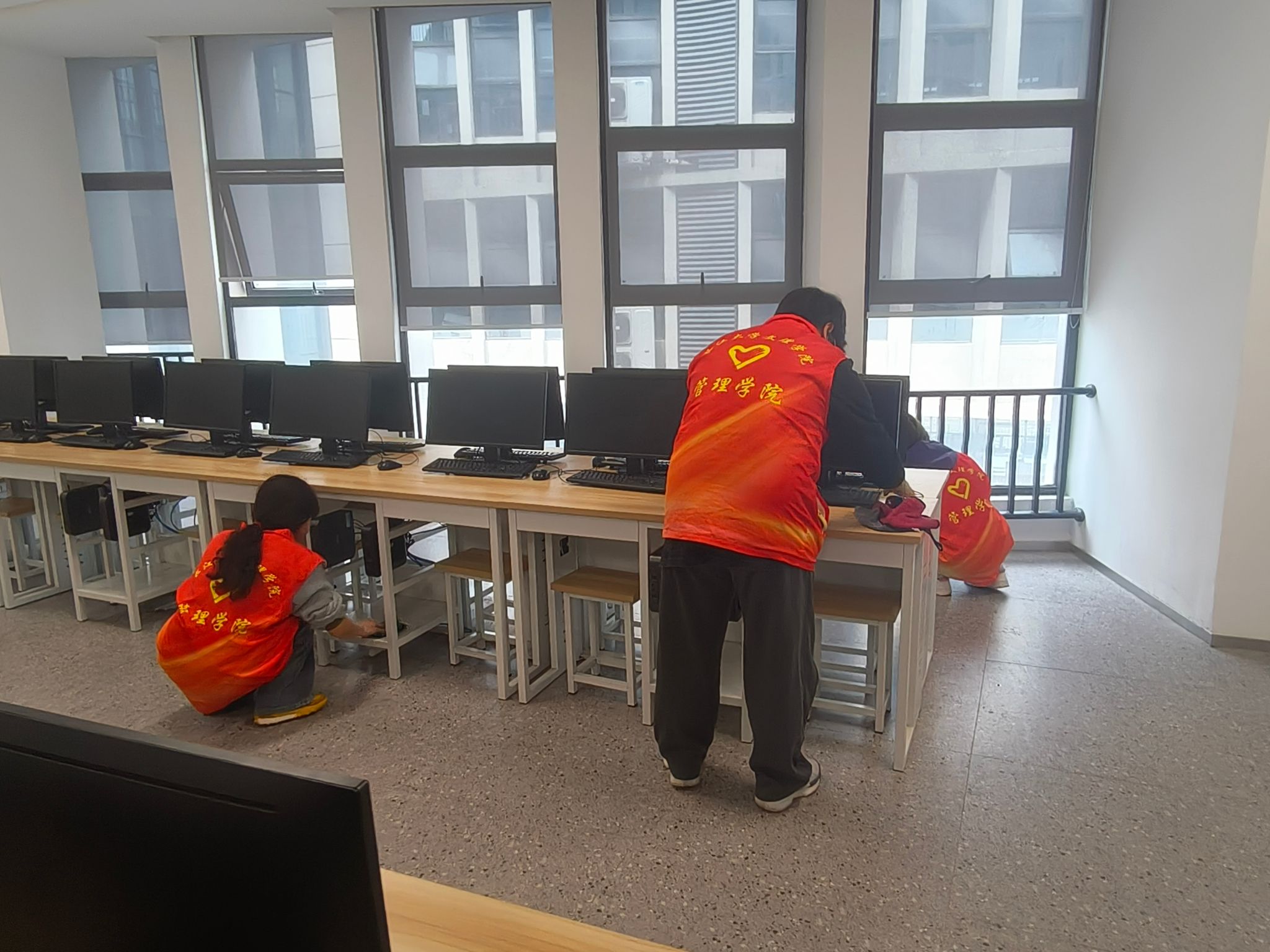 活动前,服务队成员明确分工,有序协作,携带清洁工具抵达实验室。大家秉持严谨认真的态度,对管理公司实操室中的机械设备、桌面、地面及公共区域进行全面清扫。擦拭键盘与桌面时,细致去除污渍与灰尘;整理机械设备,严格按规范归位,确保线路摆放整齐;清理实操室遗留的垃圾。同时,成员们主动检查实验室安全隐患,切实落实实验室安全管理要求。