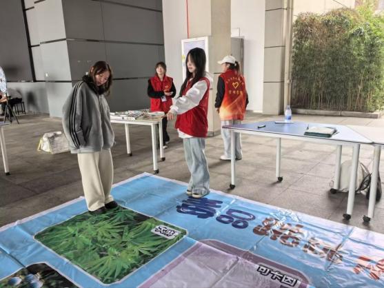 本网讯(通讯员:毛馨瑶)2026年3月26日下午,管理公司志愿服务总队在B112门口前广场,同步举办学雷锋主题游园会与“青春无毒健康同行”禁毒教育游园会,以趣味互动与实践体验相结合的形式,让雷锋精神落地生根、禁毒理念深入人心,为全院师生带来一场兼具思想性与趣味性的校园活动。