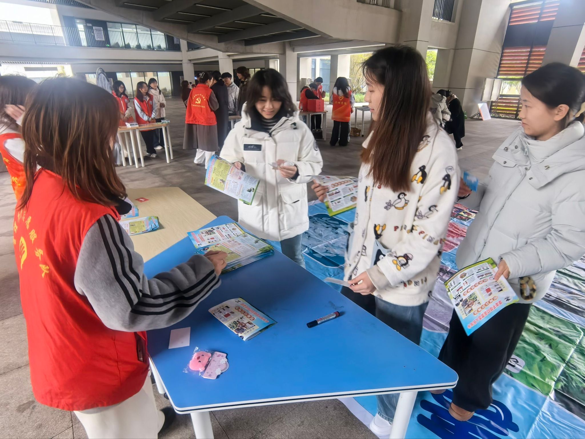 禁毒教育游园会则聚焦防毒拒毒,打造沉浸式学习场景。现场设有禁毒教育专区,通过毒品仿真模型展示、传统毒品与新型毒品对比讲解、禁毒知识连连看、禁毒小卫士拼图、禁毒承诺签名等形式,直观普及毒品危害与防毒技巧。志愿者同步发放宣传手册,引导师生自觉抵制毒品诱惑,筑牢安全防线。