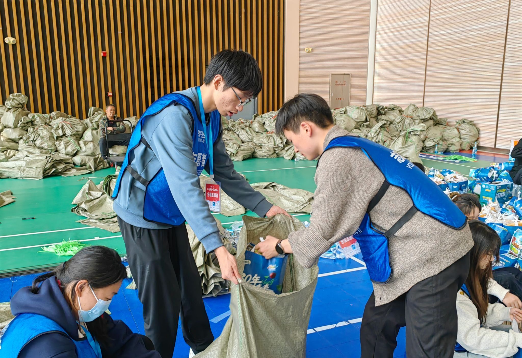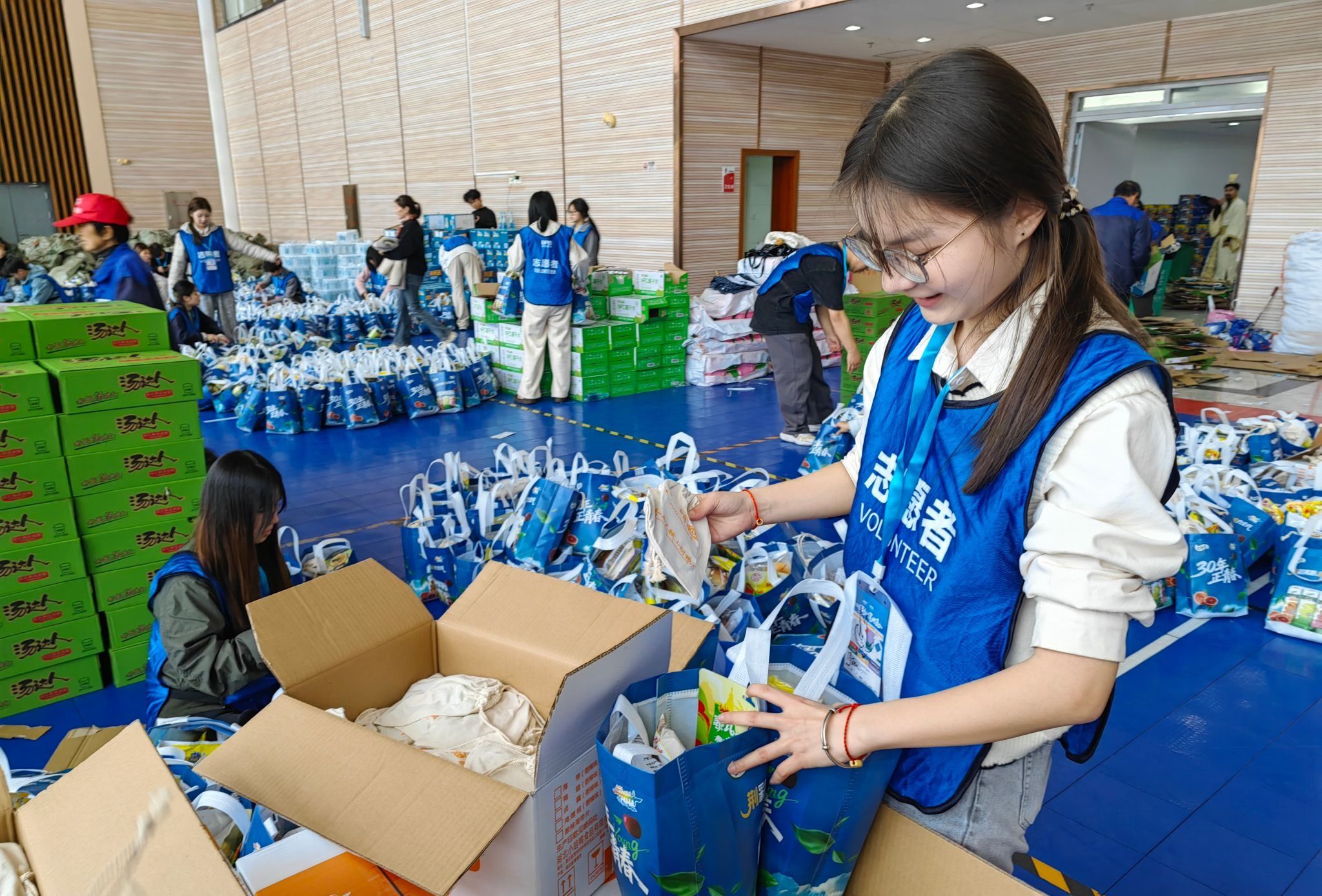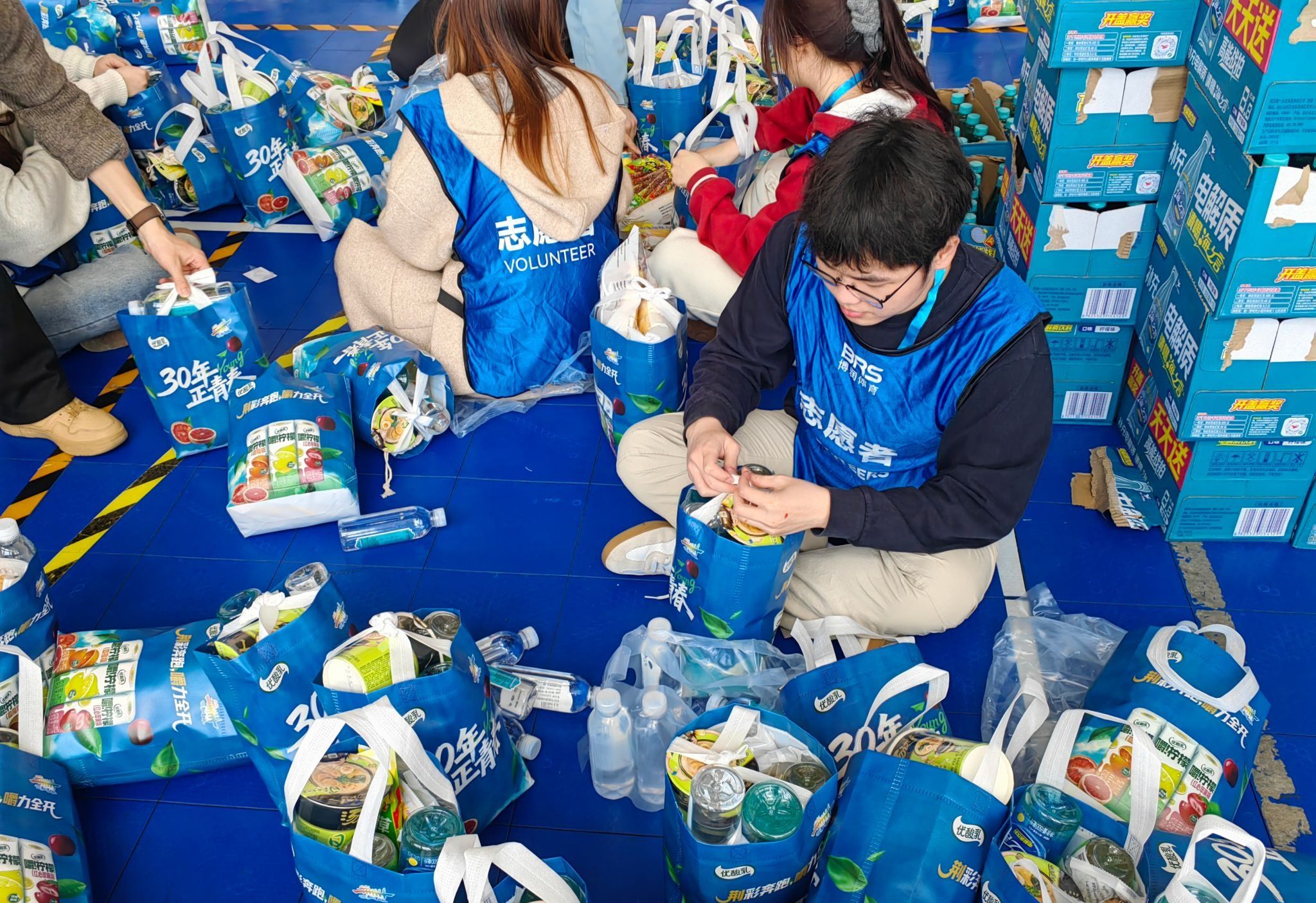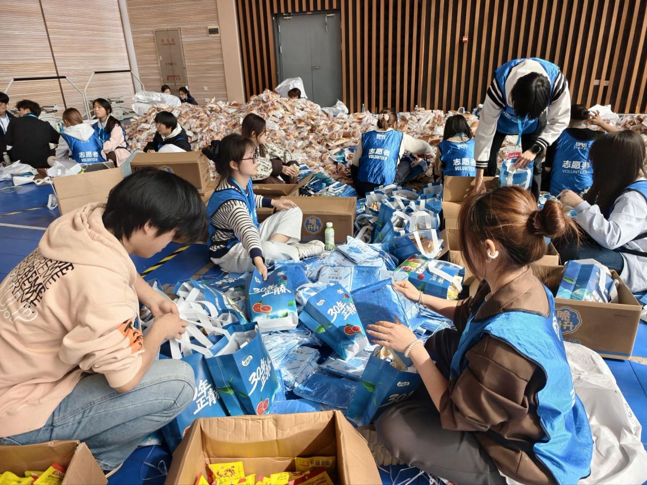 抵达服务现场后,志愿者们迅速就位、分工协作,全程以饱满热情投入工作。上午,大家专注完成马拉松完赛包装配,细致核对物资、规范打包封装;下午转而开展餐包装备工作,始终保持高效有序的工作节奏。活动中,全体志愿者精神昂扬、听从指挥,默契配合、各司其职,用认真负责的态度保障每一份物资包精准完备,让整个筹备工作有条不紊推进。