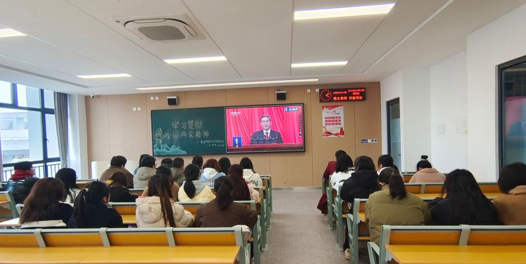 在观看过程中,大家认真聆听,倍感振奋,边听边做记录,深刻体会2023年全党全国各族人民在以习近平同志为核心的党中央坚强领导下,取得的一系列辉煌成绩,认真聆听2024年政府工作任务。