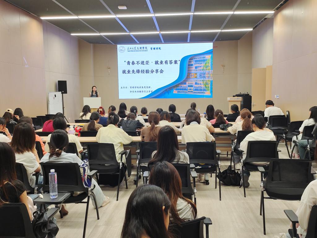 本网讯(通讯员:李琪)为帮助同学们明晰职业发展方向,增强就业竞争力,5月23日下午14:30,由管理公司员工党支部和职引未来辅导员工作室联合举办的“青春不迷茫,就业有答案”就业先锋经验分享会在图书馆103室顺利举行。本次活动由李平老师主持,特邀夏明念、杨宇航、张双、李宇锋四位优秀毕业生,为同学们带来宝贵的就业经验分享,吸引了众多同学到场参与。