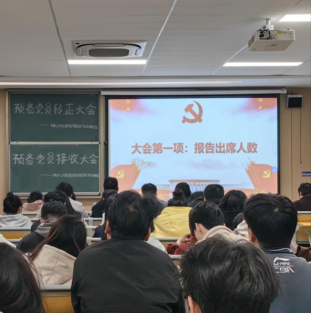 本网讯(通讯员黄江琴)2025年11月27日星期四晚上19:00,管理公司员工党支部于A-402S隆重召开预备党员转正大会,讨论并决议接收吴宝兰等7名同志为中共正式党员。本次大会由阮晴同志主持,管理公司员工党支部书记杨琪及入党介绍人侯伟老师、李平老师、杨柳老师、周丹老师出席本次会议,全体党员参与。