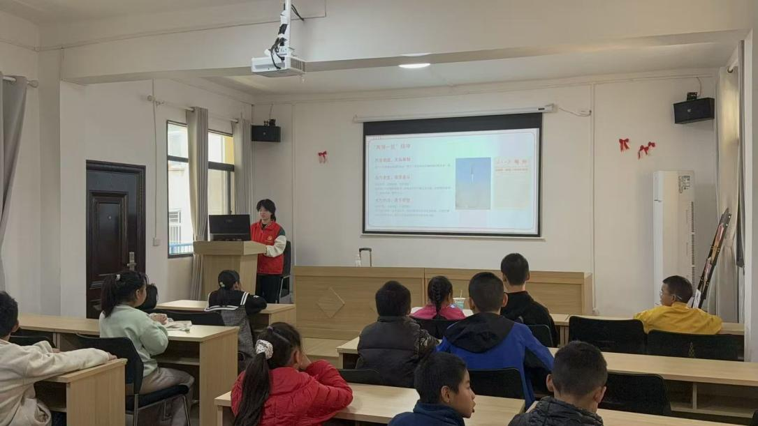 在榜样故事环节,赵玉娟同志讲述了钱学森、邓稼先等科学巨匠的感人事迹。钱学森放弃海外优厚待遇,突破重重阻碍毅然归国;邓稼先隐姓埋名二十八载,用算盘完成海量关键运算。他们“热爱祖国、无私奉献,自力更生、艰苦奋斗,大力协同、勇于登攀”的精神深深触动了在场的每一位孩子,科技报国的理想信念在讲述中愈发坚定。