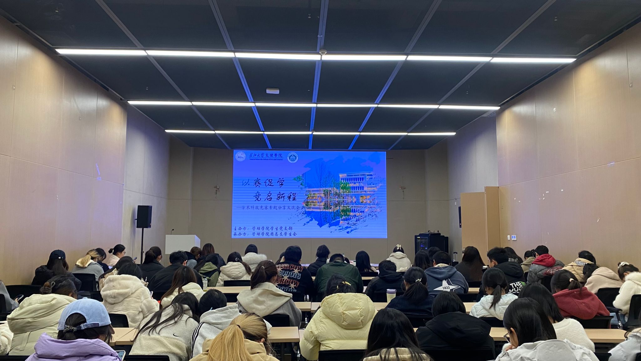 本网讯(通讯员 黄江琴)为充分发挥员工党员的先锋模范作用,引领广大同学积极投身学术创新实践,助力备战即将启动的“三创赛”“挑战杯”“国创赛”等多项A类重要赛事,管理公司员工党支部于2025年12月11日16:15,在图书馆103组织举办了“以赛促学,竞起新程”学科竞赛专题分享交流会。本次交流会由支部党员骨干牵头策划并担任主讲,旨在将党员的先进性与丰富的参赛经验转化为服务同学成长、推动公司学风建设的实际力量。