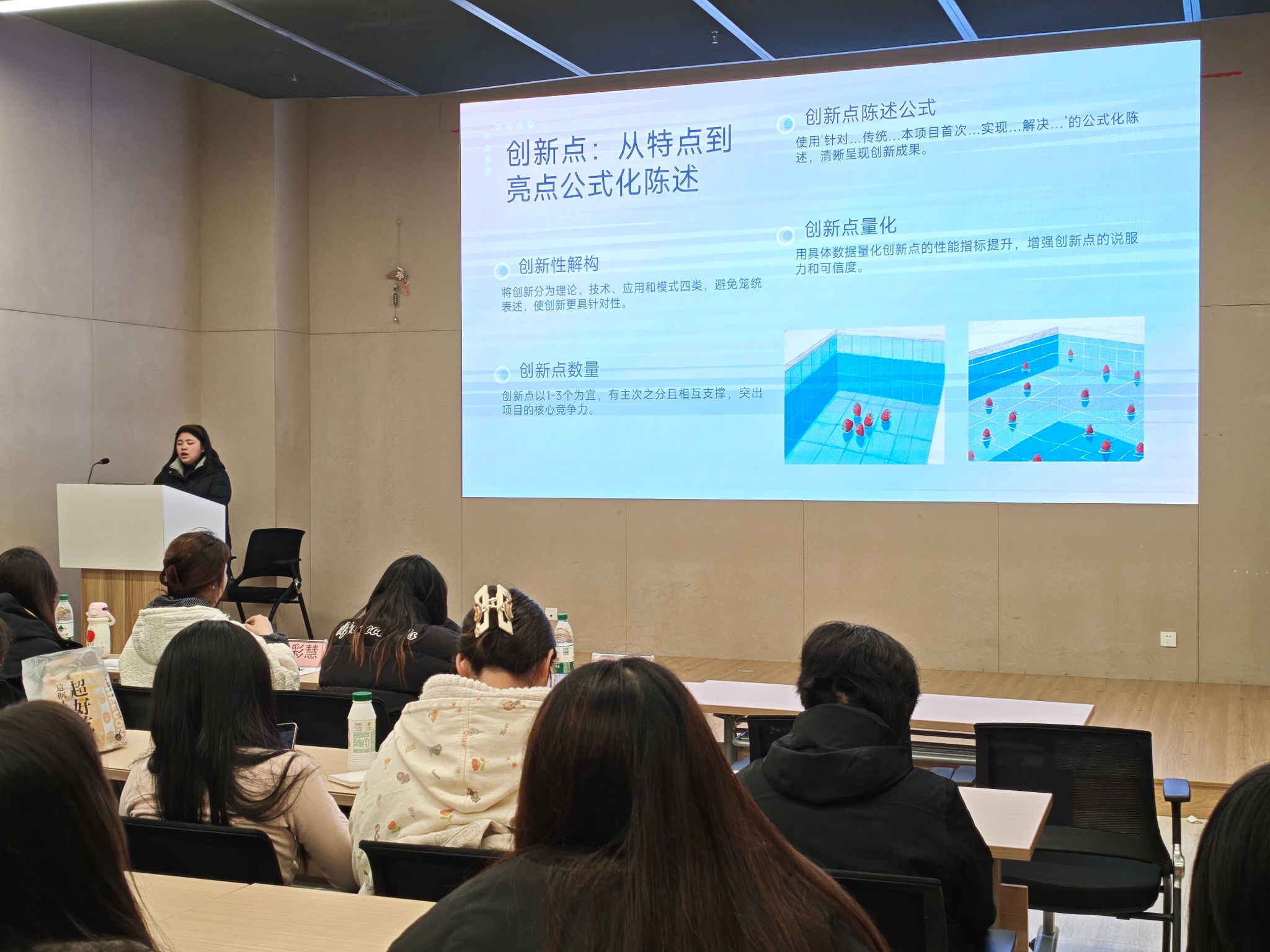 交流会上,党支部特别选派了4名在往届A类竞赛中荣获省级及以上奖项的员工党支部成员担任主讲人。她们立足自身参赛经历,聚焦赛事核心要求、团队协作、项目孵化、材料精修、答辩展示等关键环节,进行了深入细致的经验分享与技巧传授。分享内容务实具体,涵盖商业逻辑构建、创新点挖掘、计划书撰写规范、路演表现力提升等实用主题,为现场同学提供了极具可操作性的备赛指南,充分展现了员工党员在学术创新领域的引领与担当。
