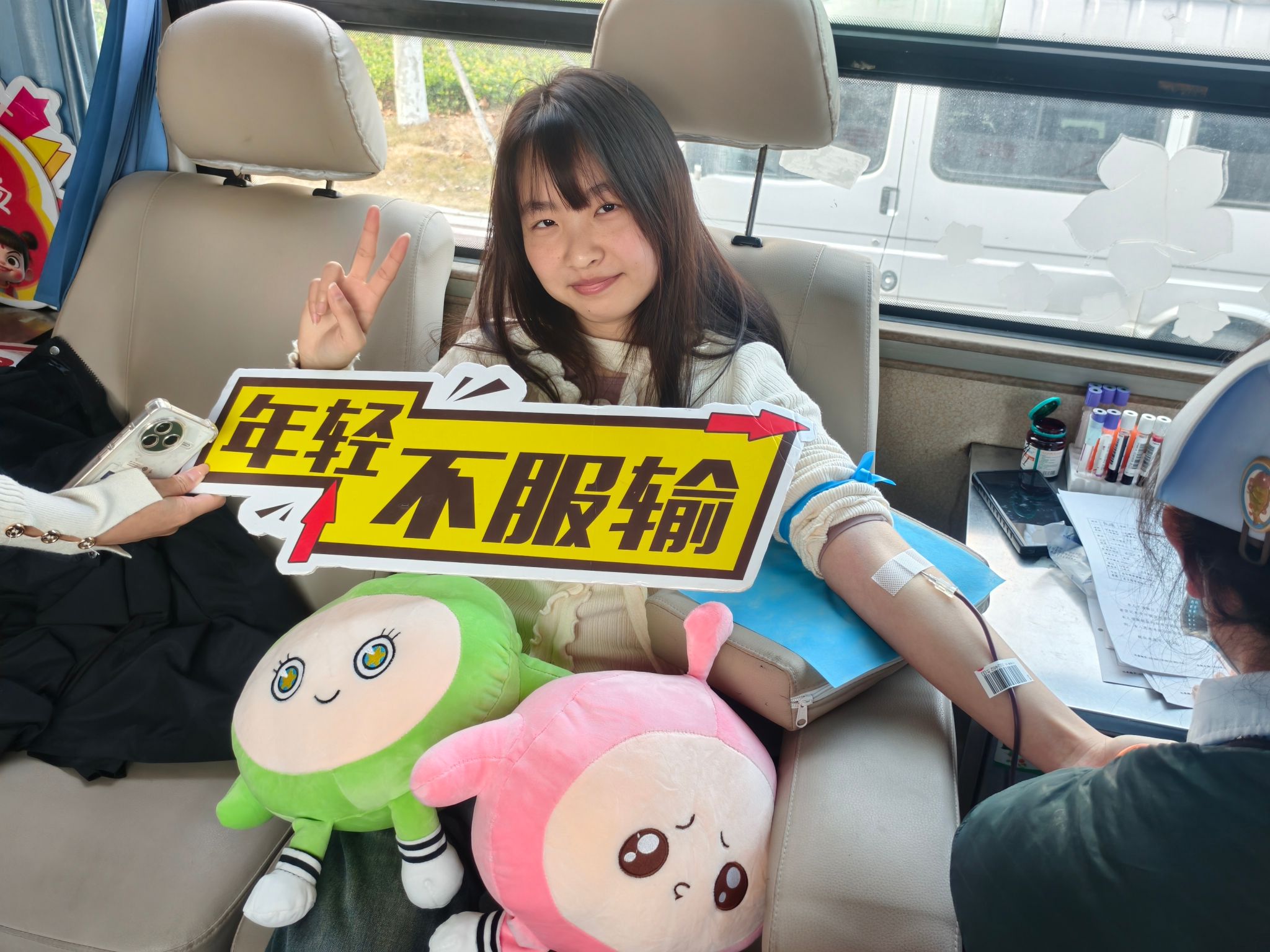 支部成员们早早来到现场,在流动献血车前自觉排起队伍。他们胸前佩戴的党员徽章在阳光下格外醒目。从填写登记表、接受健康检查,到登上采血车挽袖献血,每一个环节他们都秩序井然、沉着从容。当采血针刺入臂膀时,他们脸上洋溢着奉献的坚定与自豪。部分党员在完成献血后,并未立即离开,而是主动协助医护人员和志愿者维持秩序、照顾献血同学,将温暖从献血车传递到更远处。