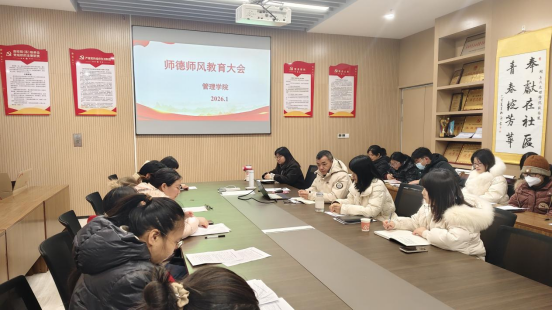 随后,在师德师风建设专题会议上,组织大家结合学习中国人民大学党委书记张东刚关于“以系统观念推进高校青年教师队伍建设”的论述精神,强调要坚持立德树人根本任务,引导全体教师特别是青年教师以德立身、以德立学、以德施教,将师德涵养融入教书育人全过程,为培养高素质管理人才筑牢思想根基。