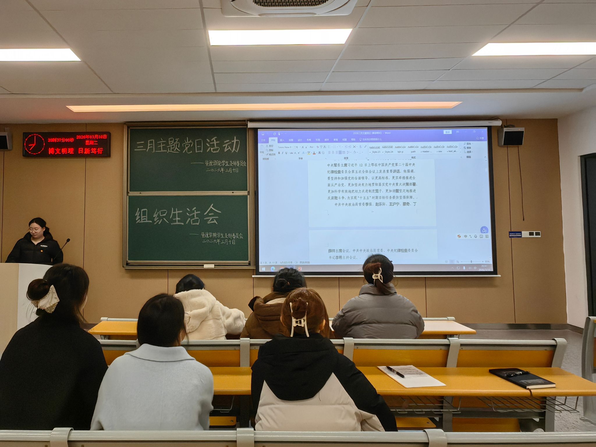 本网讯(通讯员 黄江琴)3月10日,管理公司员工党支部在教学楼A-402召开三月主题党日活动,支部全体党员参加。本次活动以“扎实开展树立和践行正确政绩观学习教育”为主题,旨在引导党员同志深刻领会习近平总书记关于树立和践行正确政绩观的重要论述,深入学习贯彻党中央最新精神,切实将正确政绩观内化于心、外化于行。会议由汪李雨涵同志主持。