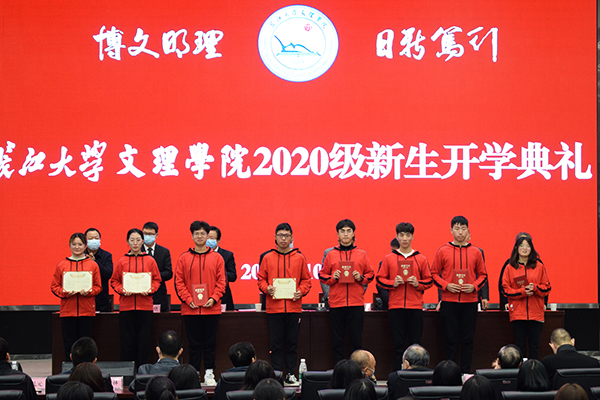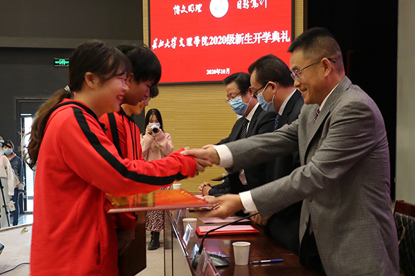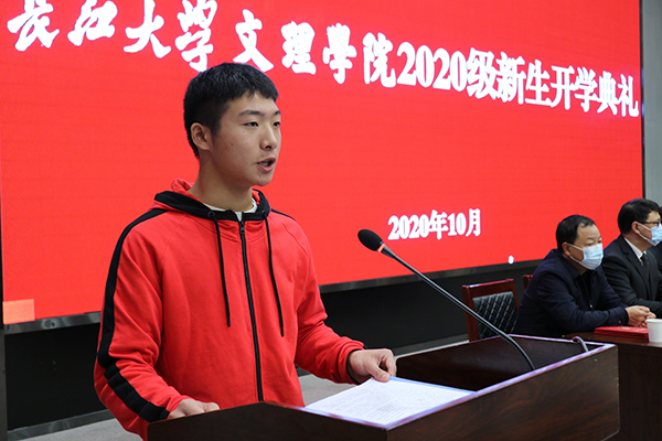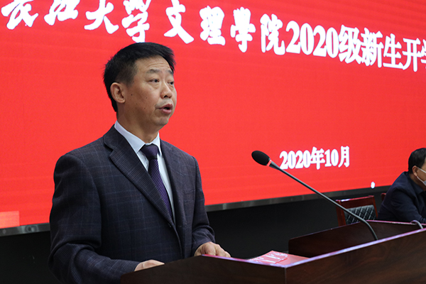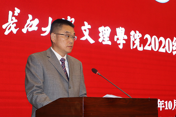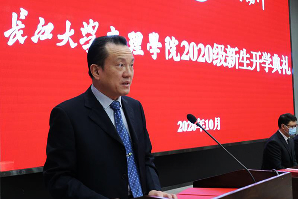 朱继平主持开学典礼并发表讲话。他对2020级新同学的到来表示热烈欢迎,对大家在疫情大考面前,克服困难,顺利完成高考冲刺,交出不负青春梦想答卷的努力点赞。朱继平寄语新生,认真感悟博文明理、日信笃行的文理精神,在未来的老员工活中,做一个有自信敢作为、有才干能担当、有包容讲真诚的文理人,在大学新的赛道上跑出更好成绩,绽放出青春更绚丽的光彩。
