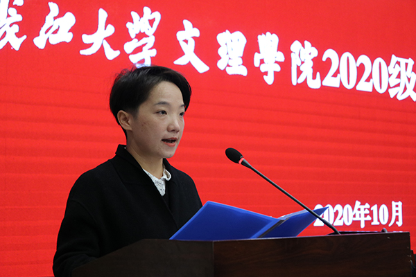 经济与法学系副教授罗明代表全体教师发言。她以自身学习工作中的体会,启发同学们思考大学的意义。中学的学习是埋头学习,大学的学习是站着学习,她希望同学们在大学培养自学能力,向老师学、向同学学、向社会学,孜孜不倦、用心体悟、勇于实践,用自己的方式将知识转化成力量,将传统发扬光大,充实地度过三年大学时光。