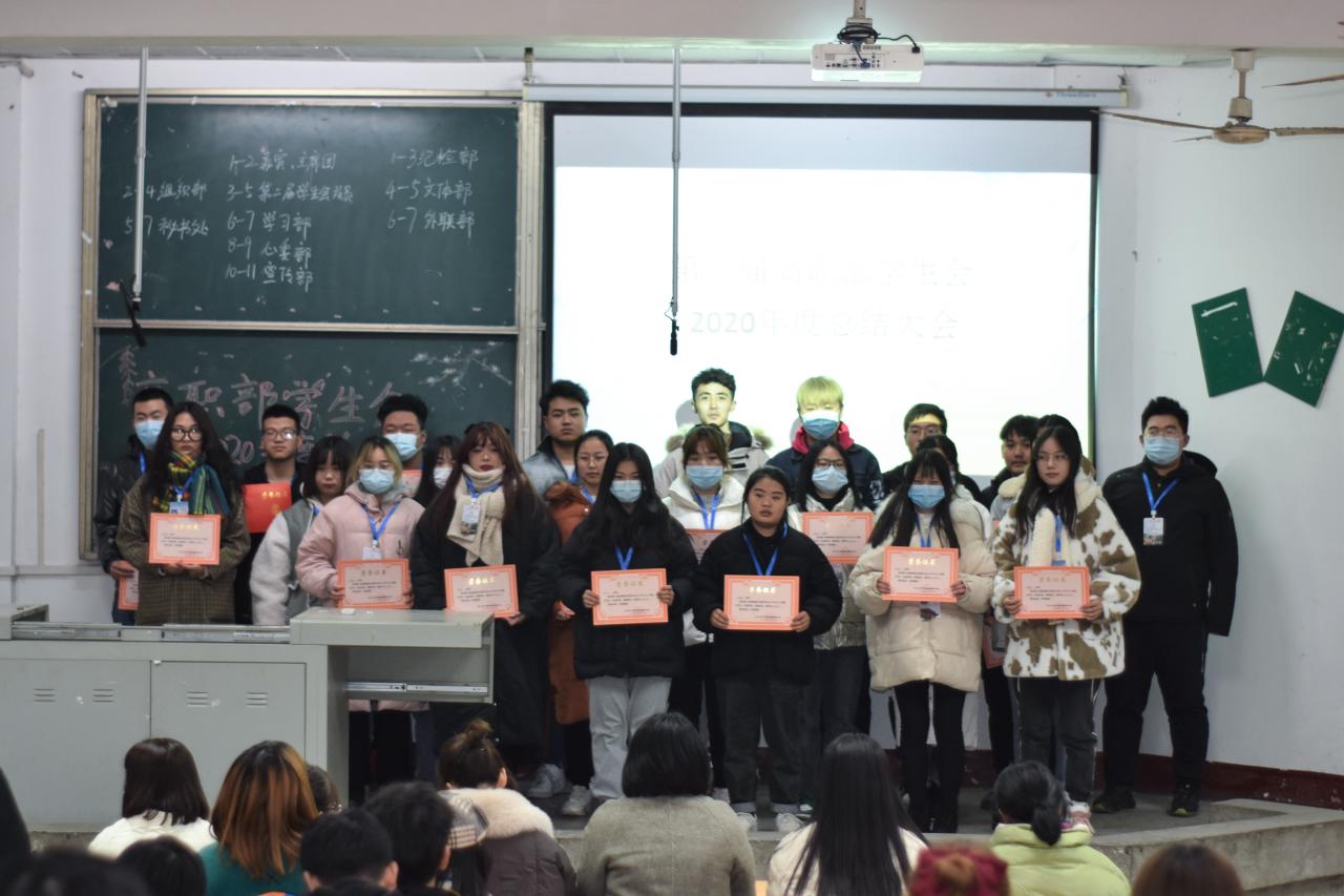 2020年度员工会工作即将结束,为推动高职部员工会工作更好更强更长久的发展,保证员工会新旧成员交接后能够更快的正常运转,同时对上一年度在工作中表现突出的员工会干事给予表彰,高职部员工会在西校区四教200召开了2020年度总结大会。此次大会共七项:第一项、由主持人介绍出席本次会议的嘉宾;第二项、高职部员工党支部书记黄婷婷老师上台讲话;第三项、颁发证书;第四项、各部门依次上台作工作汇报;第五项、第三届高职部员工会主席团成员代表周海静上台发言;第六项、高职部员工会指导老师王瑆皓老师上台发言;第七项、主持人宣布会议结束。