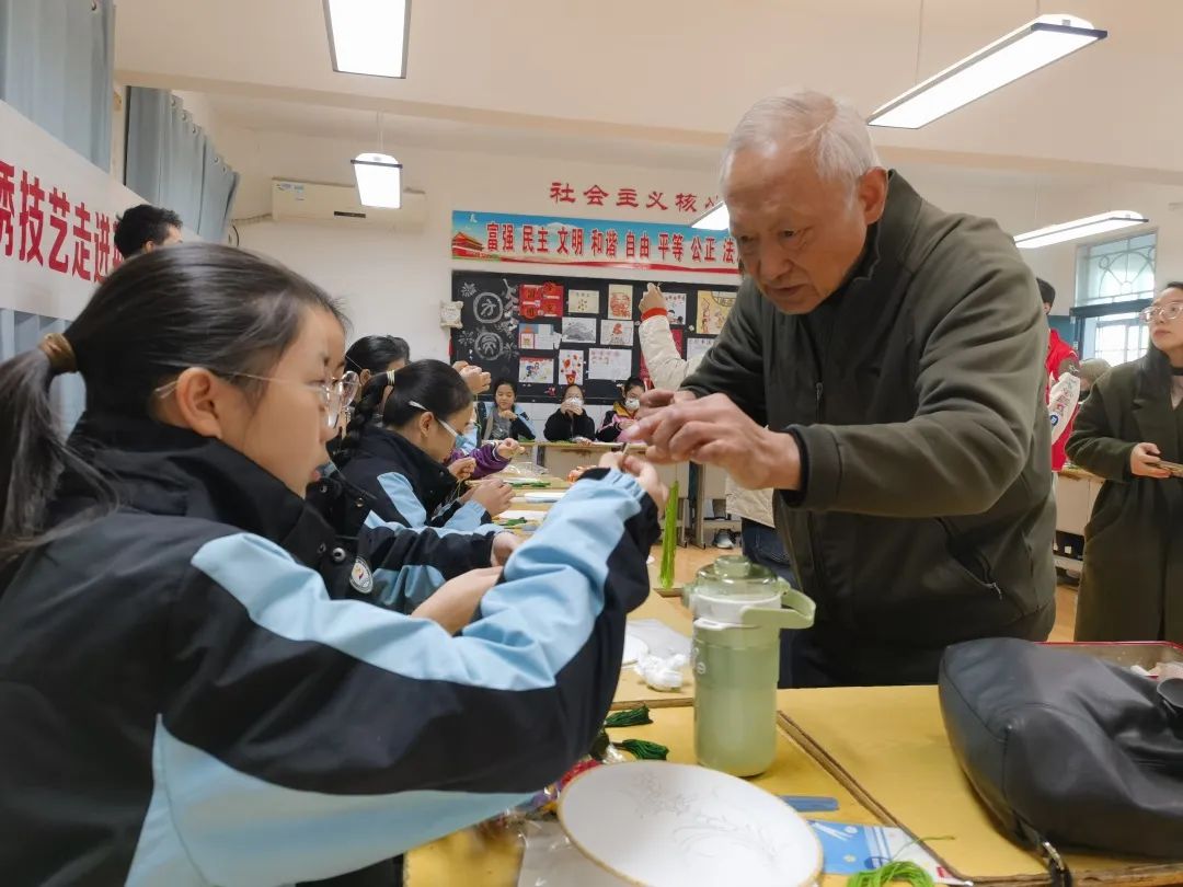 上午,汉绣省级代表性传承人张先松、市级代表性传承人廖伶俐带着他们的徒弟在荆州市实验中学附属小学开展了“非遗进校园,文化润童心”汉绣培训工作,对30余名小员工教授汉绣知识和手工技巧。