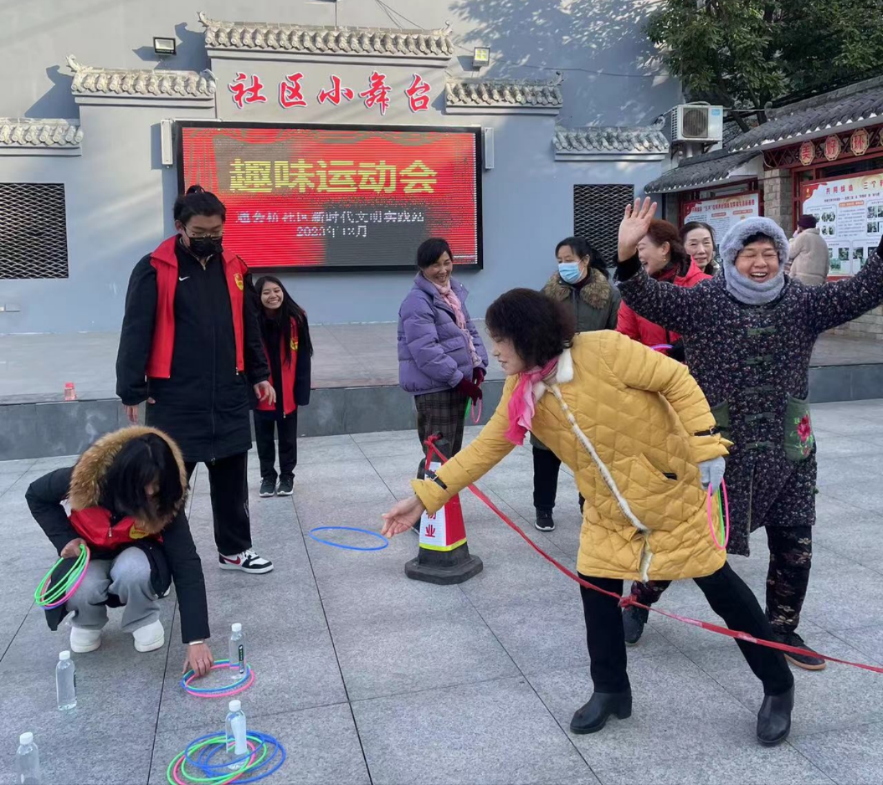 12月22日上午,又联合西城街道郢都路社区“迎冬至、勤锻炼”趣味运动会。主持人一声令下,大家开始做热身运动,在投壶、踢毽子、夹乒乓球、拔河几场大比拼下,比赛现场如火如荼,笑声一片!大家仿佛找回了童年的乐趣,简单有趣的运动拉近了居民之间的距离,大家互相配合,既锻炼了身体又愉悦了心情。“这样的活动希望以后多多举办,趣味运动难度不高,氛围又好,还能锻炼大家的团队协作能力,真的很不错。”社区居民王女士说道。