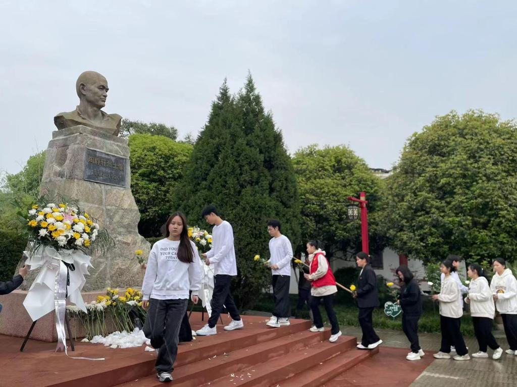 随后,全场肃立,向英雄烈士敬献花篮。活动现场志愿服务队王晓芸同学带领全体团员重温入团誓词,党员重温入党誓词。随后,全体人员手持鲜花,依次将鲜花摆在纪念碑石阶上寄托哀思。
