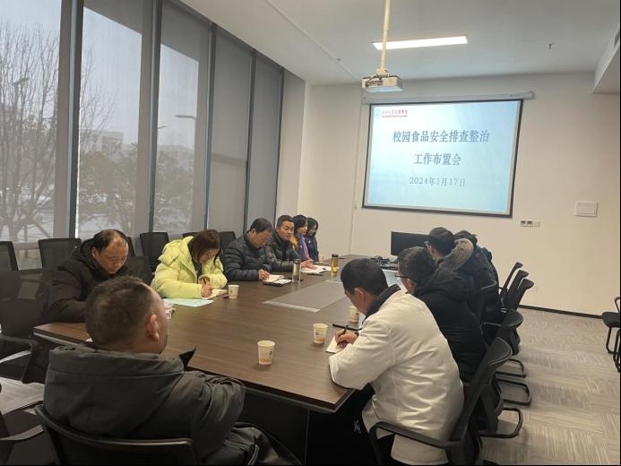 本网讯(通讯员吴丹)1月17日下午,后勤保障处在图书馆104会议室召开校园食品安全排查整治工作暨2023—2024学年寒假前后工作布置会。经理助理郭明虎出席会议,后勤保障处全体工作人员、荆州城发物业管理有限公司相关工作负责人参加会议。会议由后勤保障处处长王震主持。
