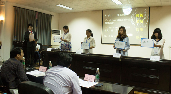 经过前几轮赛事的激烈角逐,人文系“文渊阁”、“羽凌天下”队,经贸系“一统江湖队”和外语系“五米阳光”队入围决赛。在词语听写、成语补空和诗词填写三个环节中,参赛团队进行扣人心弦的团体抢答,用工整准确的书写和扎实深厚的文字功底为团队争分。