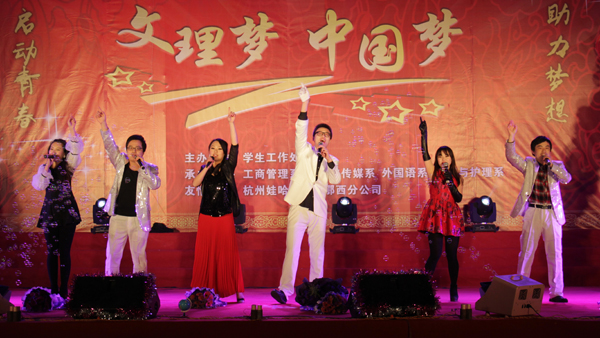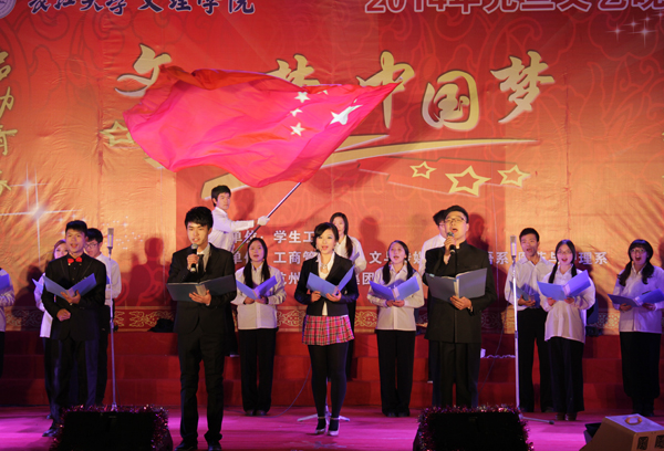 心怀实现中华崛起的梦想,心怀建设美好文理的愿望,26日,由公司人文与传媒系、医药与护理系、外国语系和工商管理系联合举办的主题为“中国梦·文理梦”元旦晚会在城中校区隆重举行,公司领导沈光明、郭睦庚、汪邦柱等出席并与千余名师生共同观赏了本场晚会。