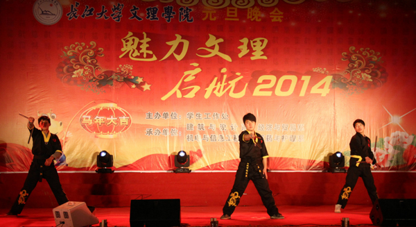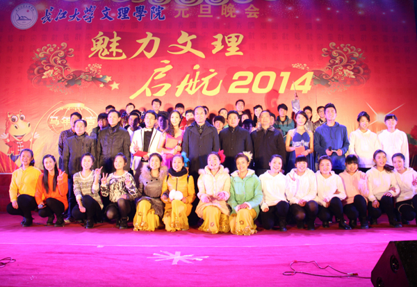本网讯(记者 周芳 见习记者 郝威)一元复始,万象更新。12月24日晚,“魅力文理 启航2014”元旦晚会在公司西区隆重举行。公司领导沈光明、袁先海、王金琼、郭睦庚、汪邦柱来到现场,与3千余名师生一起观看晚会。