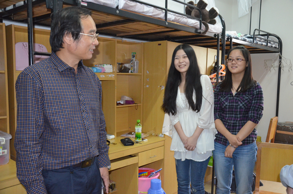 经理沈光明走访新生寝室