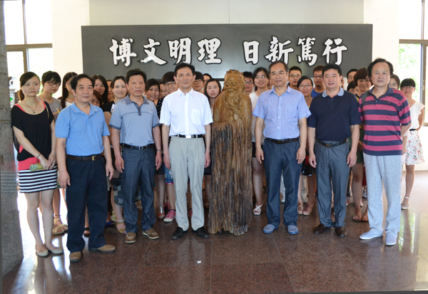 伴随着同学们热烈的掌声,2013届毕业生代表向母校捐赠了象征中华传统文化的孔子楠木雕像。
