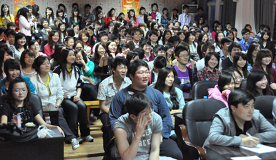 在自我介绍这一环节,十四位选手各出新意,力争使自己的自我介绍显得与众不同,给评委留下良好的印象,“火锅美女”魏盼旁征博引,从食品品牌、家具品牌等各个方面来介绍“盼盼”,幽默诙谐的语言逗得满座捧腹大笑;在联合主持期间,选手抽签两两组合,每组各具特色,有主持娱乐节目的,有主持访谈节目的,还有搞笑节目“白日梦话秀”,各组主持人默契的配合赢得了大家的阵阵掌声,李佯老师也投入到娱乐节目“游戏王”中,和大家一起模仿鸵鸟,可爱的动作惹得众人忍俊不禁;才艺展示环节,大家各施绝技,播音5081班 “销魂姐” 詹瑶一段清唱《女驸马》博得了满堂喝彩,而广电5092班喻锋的两段绕口令更是令人赞不绝口;“妙语连珠”、“我在现场”和“超级访问”等环节也是精彩异常,选手们灵活的应变能力和控场能力得到了评委的充分肯定。