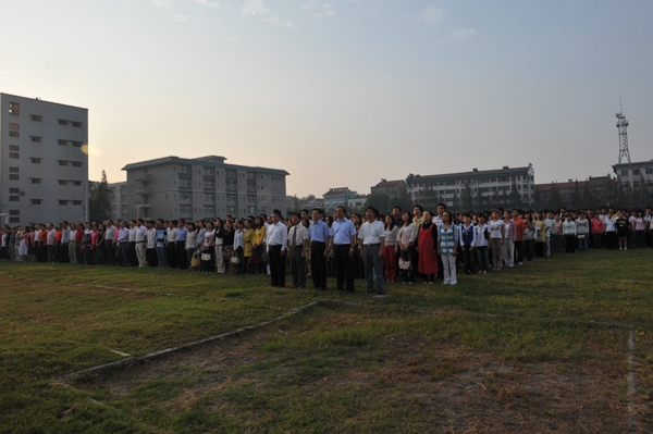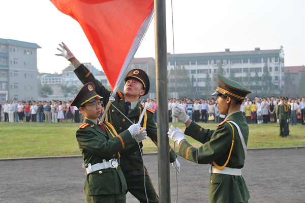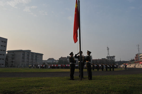 本网讯(员工记者 周相飞 徐敏)国庆大典,普天同庆。为向祖国六十周年献上最诚挚的祝福,10月1日上午7点半,公司领导沈光明、袁先海、王金琼、郭睦庚、汪邦柱以及500多名师生参加了庄重的升旗仪式。