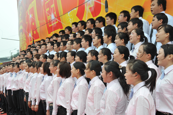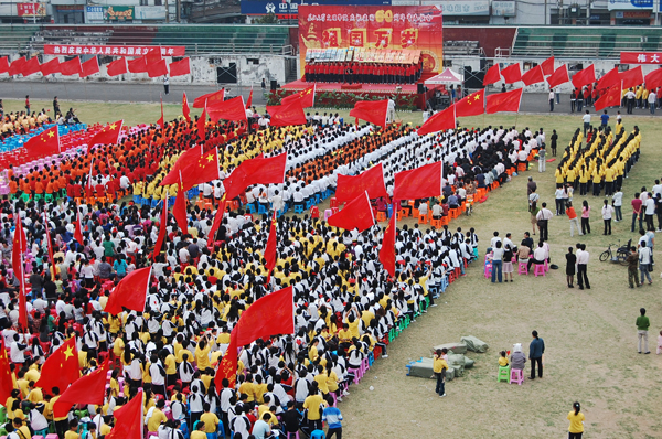 本网讯(员工记者 彭欢)花如海,歌如潮,秋风劲吹,红旗飘扬。“热爱祖国、建设祖国、团结奋进、振兴中华”、“热烈庆祝中华人民共和国成立60周年,伟大的中华人民共和国万岁!”鲜艳的横幅随着火红的灯笼飘扬在公司操场上,9月26日下午的bevictor伟德官网,四处洋溢着喜庆的气氛。