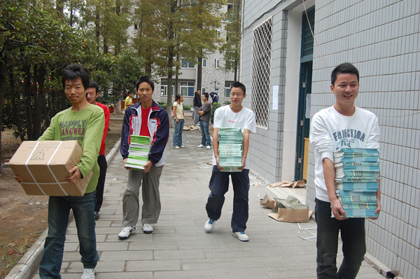 此外,教务处、学工处、财务处、后勤服务保障中心等职能部门各司其职,配合学部做好新生开学工作。记者在教材科看到,员工排队等候领取教材,现场秩序井然,教务处制定出开学第一周教学检查计划;学工处积极筹备09级新生报到工作及新生入学教育工作;后勤服务保障中心在开学前对所有教室线路进行检修,检查桌椅、电扇、电灯等公共设施,为全院师生提供整洁、优美的校园环境。