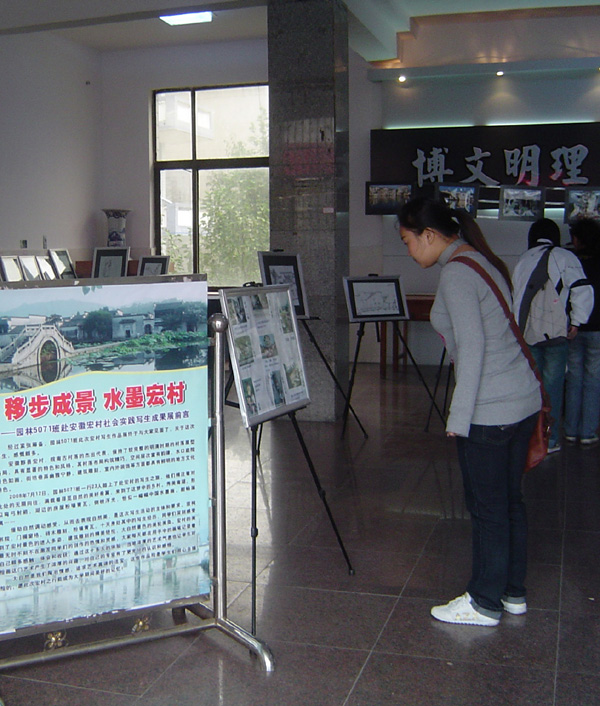 这次成果展所展出的作品是今年暑假园林5071班同学在指导老师江丽的带领下在历史悠久、环境优美的古村落——安徽宏村亲身体验十天创作的写生及摄影作品。