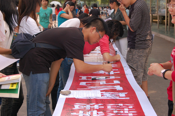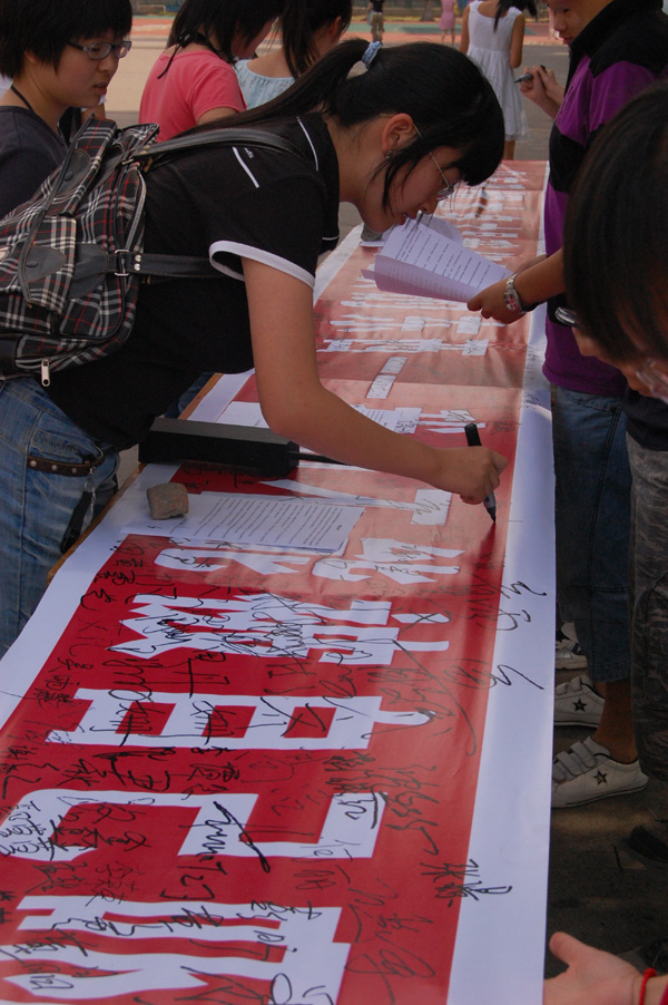 本次活动能够引起公司广大师生的积极响应和支持,并顺利地开展,是因为本次活动得到了院各级领导和广大师生的重视支持,并且道出了广大师生的共同心声:我们要理性和冷静面对一切突如其来的灾难,用我们的言行去表达我们的爱国之心。院领导、各个学部老师和同学们对本次活动给予了积极的肯定和高度的评价!
