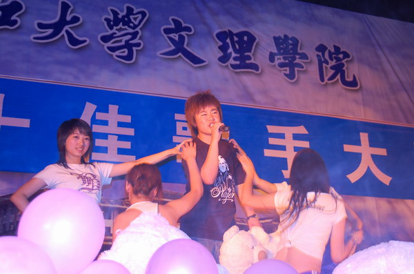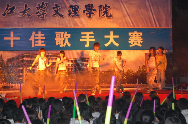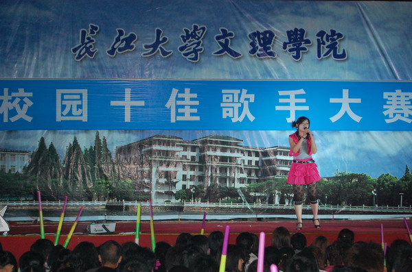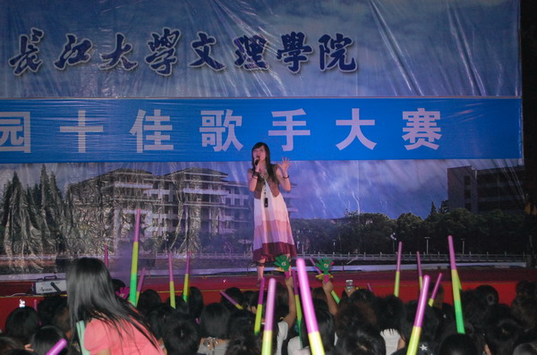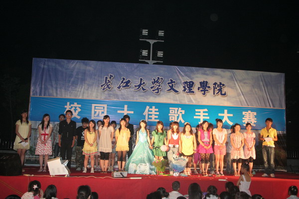 比赛还没开始,现场就已聚满了前来“观战”的同学,各参赛选手的亲友团忙得是不亦乐乎。来自人文学部的田赛同学以一曲《小背篓》唱响了本场比赛,华丽的着装、甜美圆润的嗓音震撼了全场,将观众引入了民歌的王国,领略了浩瀚多彩的民族元素。动感十足的《找自己》传递出了选手对汶川地震中受难者的深切祝福,希望他们能够尽快找到自己的新方向、重建家园。两个甜美可爱的小女生将一曲《星光游乐园》演绎的美轮美奂,在复活赛中晋级的管琼也带来了她的舞蹈团,热歌辣舞让现场气氛high到了极点……比赛过程中,评委恰当地为选手们的表现进行了忠肯的点评。最终,曾晨等十位选手从众多参赛选手中脱颖而出,获得了“十佳歌手”的荣誉称号。